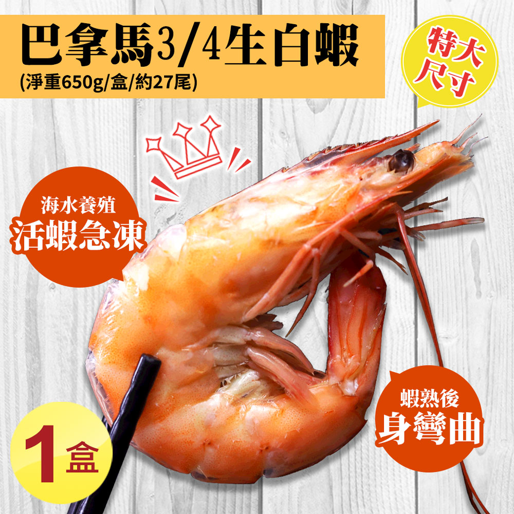 ‧●商品名稱:特大巴拿馬活凍白蝦(淨重650g/盒/27尾)-任選