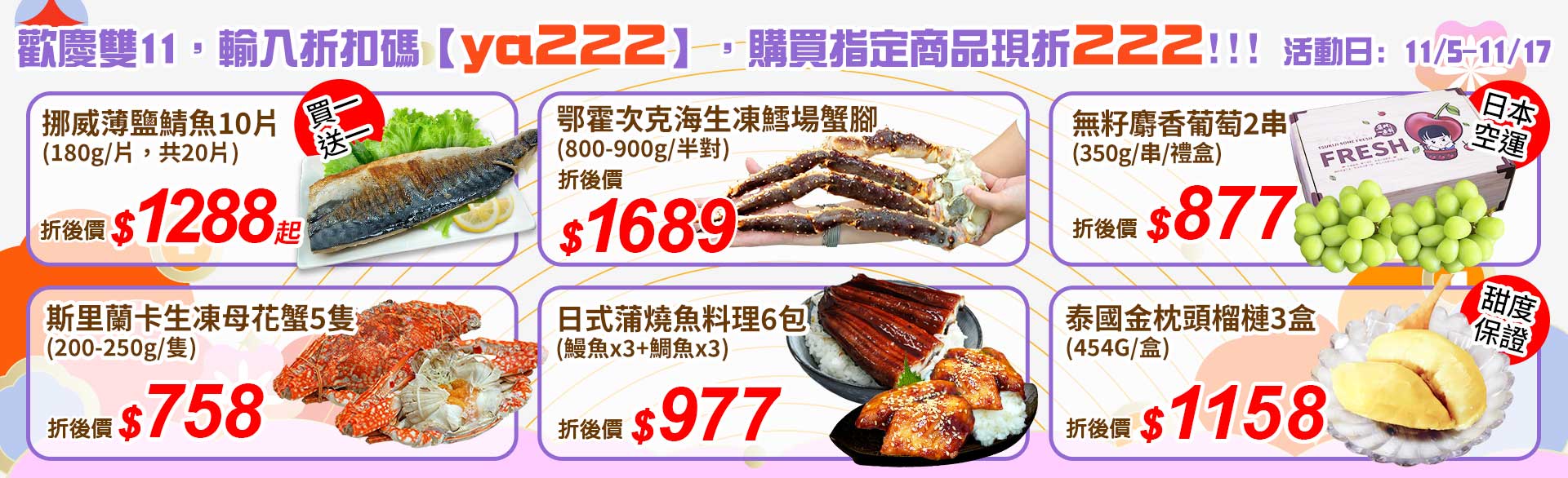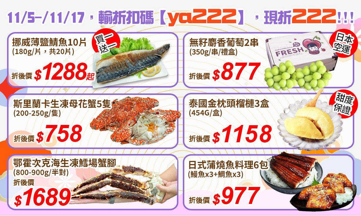 ★11/5-11/17限定│輸入折扣碼ya222 ☛ 現折222元