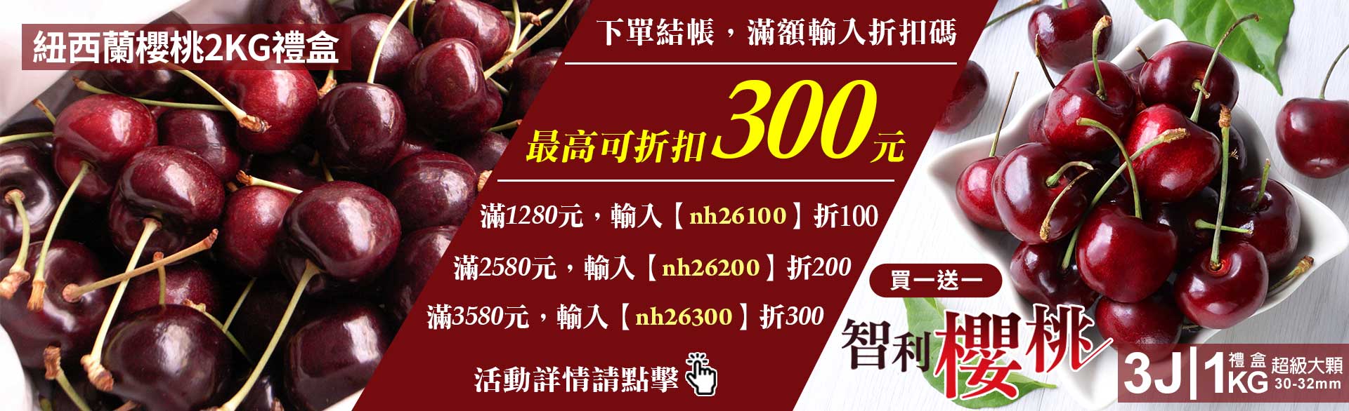 滿額最高折300|空運|紐西蘭/澳洲|30-32mm櫻桃|2kg禮盒