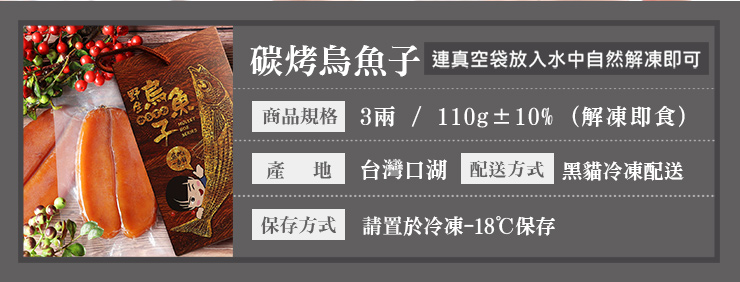 .商品名稱:野生頂級即食炭烤烏魚子(3兩/片)-任選