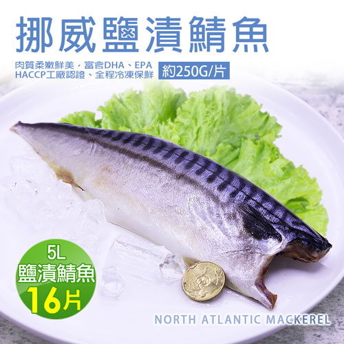 .商品名稱:5L大挪威薄鹽鯖魚16片(250g/片)