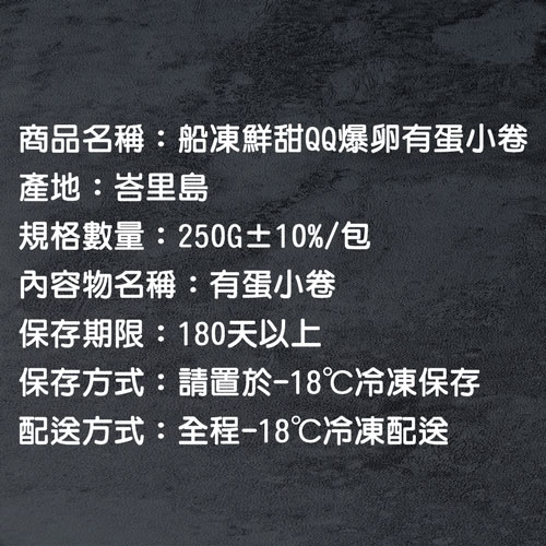 .商品名稱:船凍鮮甜QQ爆卵有蛋小卷5包(250g/包) 免運