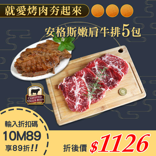 ★會員限定89折★美國安格斯黑牛嫩肩牛排300gx5包