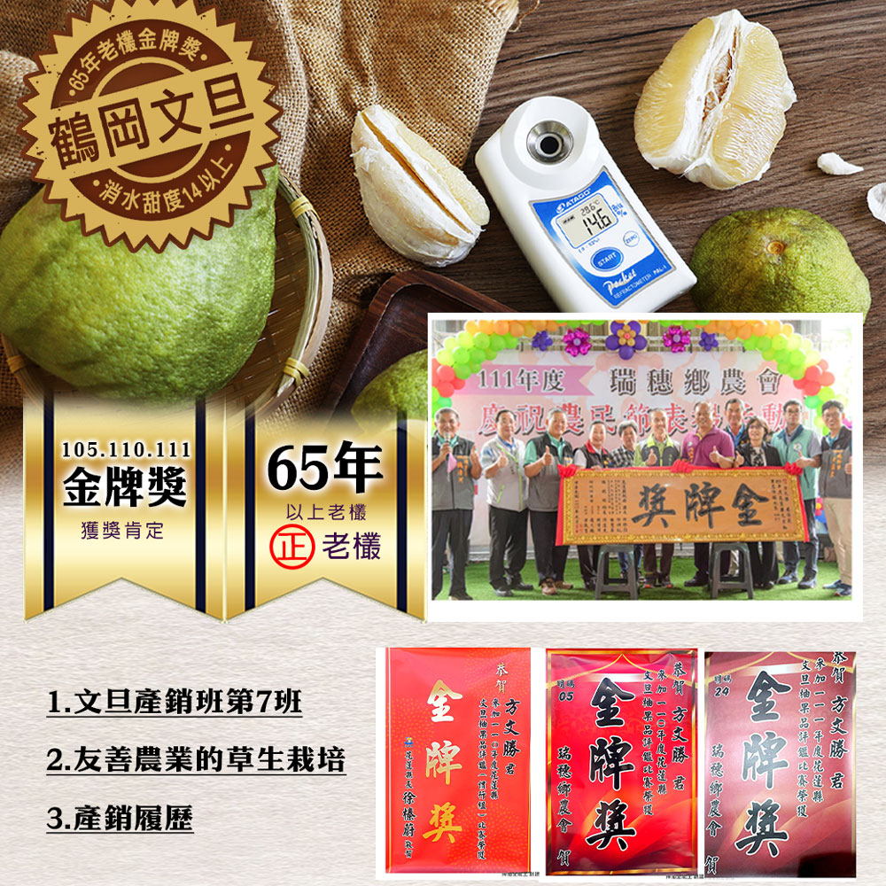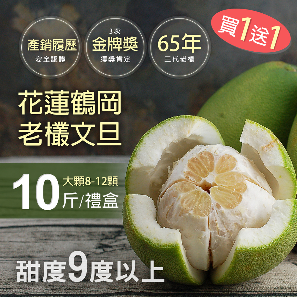 .商品名稱:★買1送1★65年金牌獎老欉花蓮鶴岡文旦10斤禮盒(大顆8-12顆/盒)免運