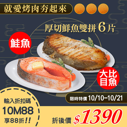 .商品名稱:厚切鮭魚大比目魚雙拼6片組(380g/片)