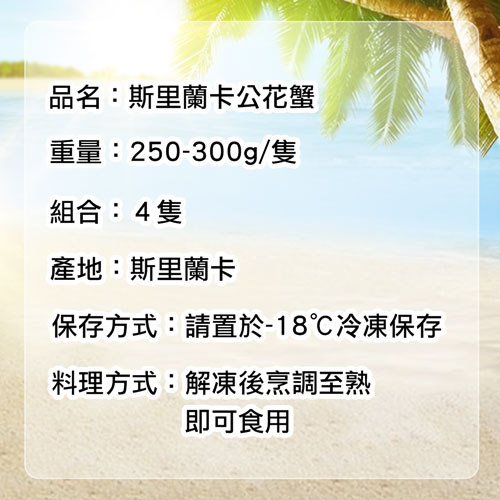 .商品名稱:XL|斯里蘭卡|公花蟹250-300g |4隻