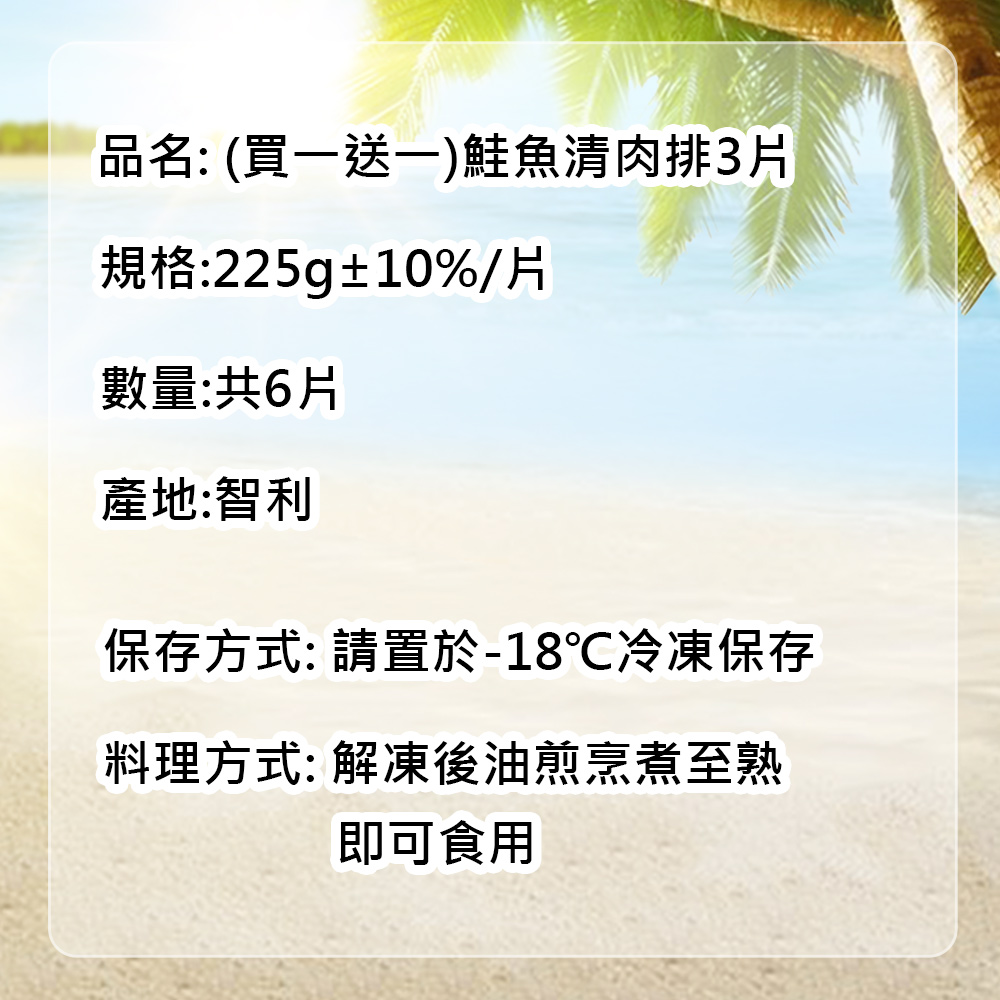 .商品名稱:★買3送3★鮭魚清肉排(225g/片)