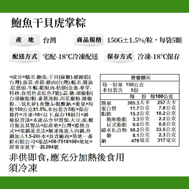 .商品名稱:干貝鮑魚虎掌粽5顆|150g/顆|端午節粽子