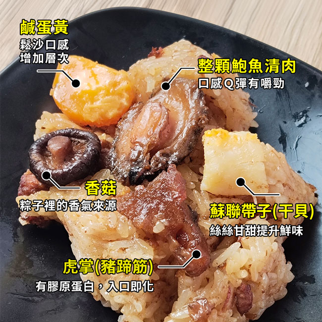 ◆虎掌粽 整顆鮑魚、干貝南部粽搭配虎掌