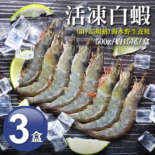 ●商品名稱:31/35|海水養殖白蝦500g|3盒|約15尾|免運
