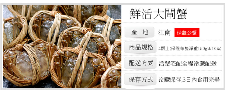 ●內容物名稱:鮮活大閘蟹