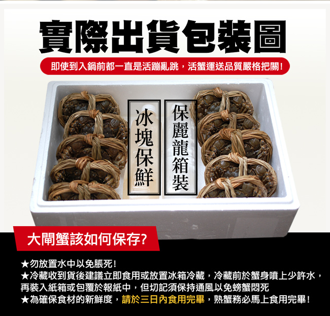 ※活蟹商品嚴禁拒收出貨將依簡訊通知,若收貨不便務必盡速通知