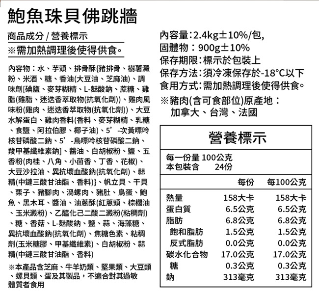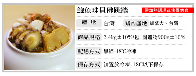 ●商品名稱:買一送一|築地佛跳牆2.4kg|升級鮑魚珠貝|共2盒