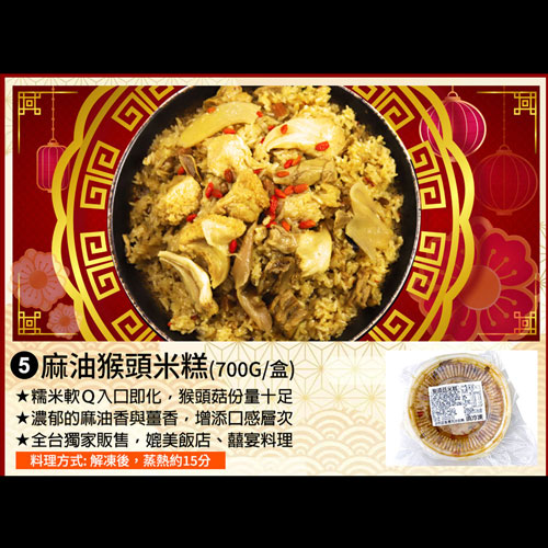 5. 麻油猴頭米糕:如圖所示(依商品包裝標示為準)