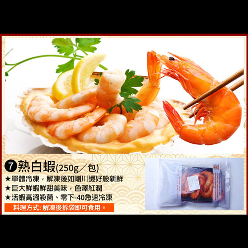 7. 熟白蝦:如圖所示(依商品包裝標示為準)