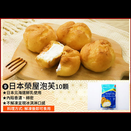9. 榮屋北海道鮮奶油泡芙(10個/195g/包)