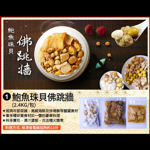 1. 鮑魚珠貝佛跳牆(2.4kg/盒)