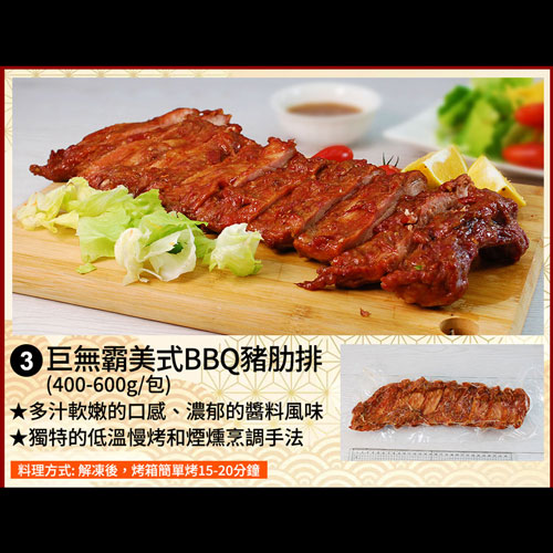 3. 巨無霸美式BBQ豬肋排:如圖所示(依商品包裝標示為準)