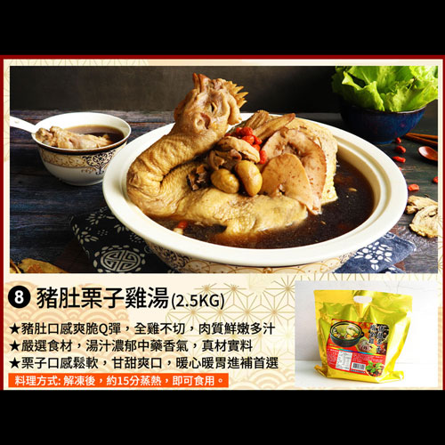 8. 豬肚栗子雞湯:如圖所示(依商品包裝標示為準)