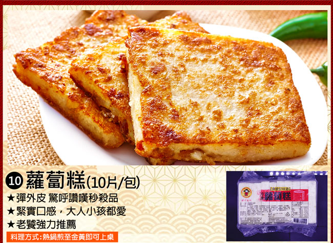 10. 蘿蔔糕:如圖所示(依商品包裝標示為準)