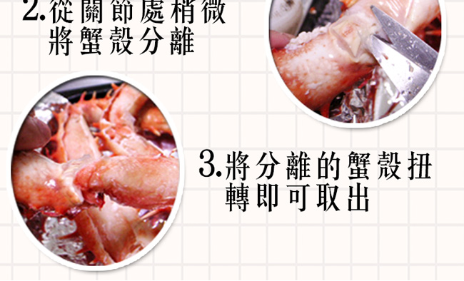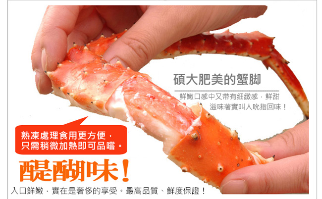 ※熟蟹解凍既可食用,切勿長時間入湯鍋熬煮,避免帝王蟹的肉質鮮味流失。