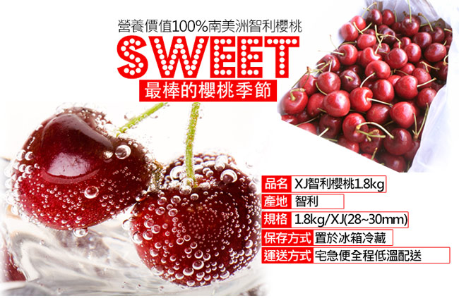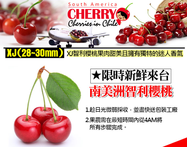 .商品名稱:28-30mm|XJ智利櫻桃1.8kg|1盒