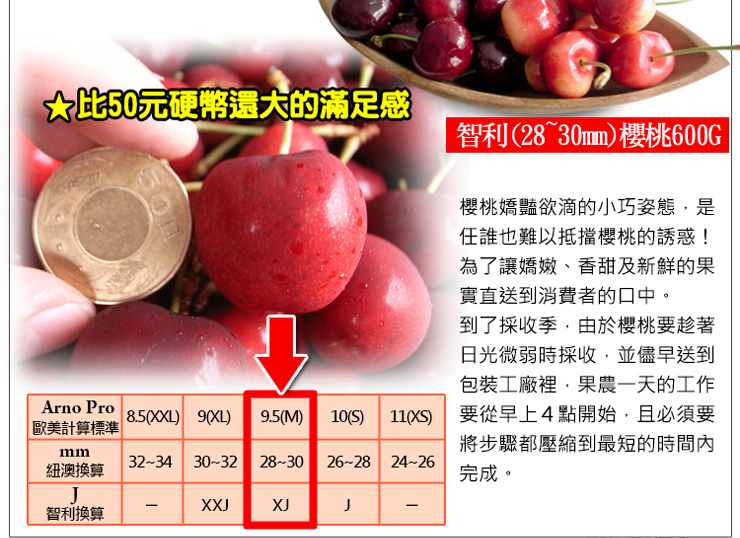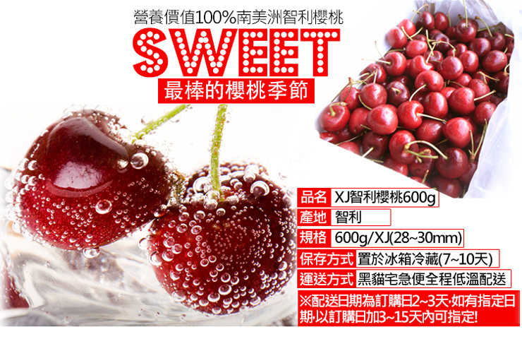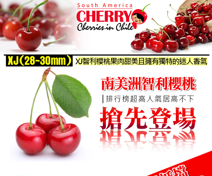 .商品名稱:空運|28-30mm|XJ 智利櫻桃600g|買一送一|共2盒