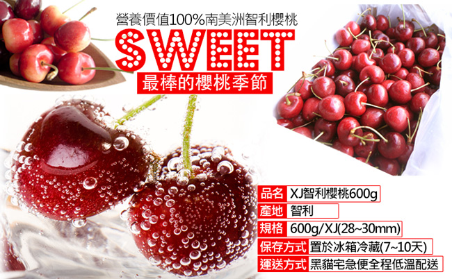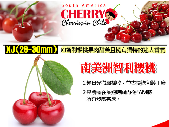 .商品名稱:28-30mm|XJ 智利櫻桃600g|買一送一|共2盒
