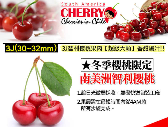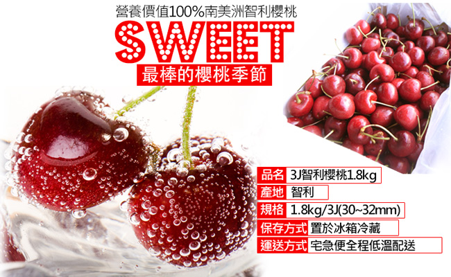 .商品名稱:空運|30-32mm|3J 智利櫻桃18kg|1盒