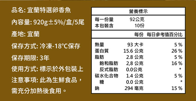 .規格數量:920g±5%/盒,每盒5尾裝,共收到1盒