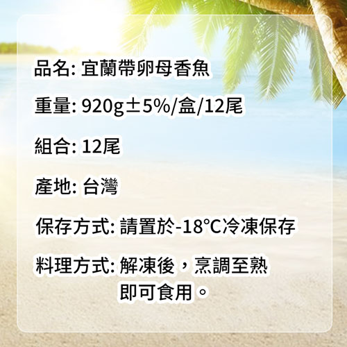.商品名稱:宜蘭|帶卵母香魚12尾組|920g/盒|任選