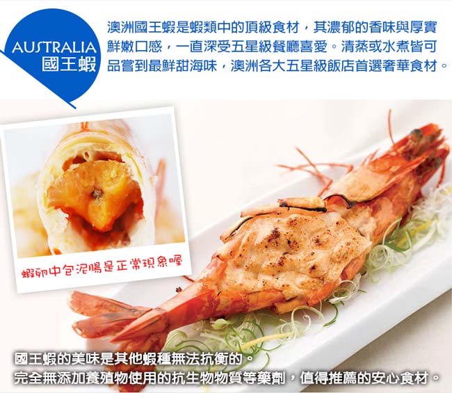 .商品名稱:◎澳洲大堡礁野生國王蝦1包(500g/包/7±2尾)-任選