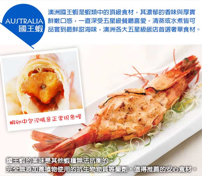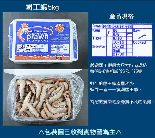 .商品名稱:澳洲大堡礁野生國王蝦5KG原裝箱(5KG/75±5尾)免運