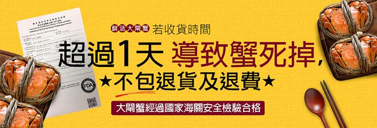 ※活蟹商品嚴禁拒收出貨將依簡訊通知,若收貨不便務必盡速通知