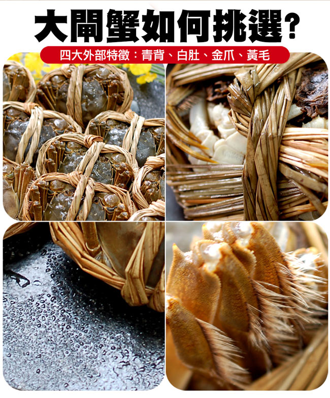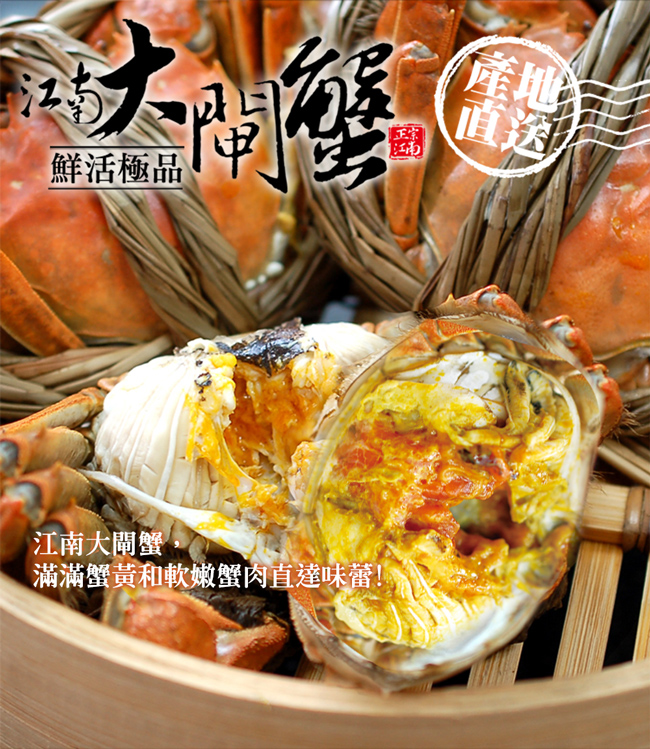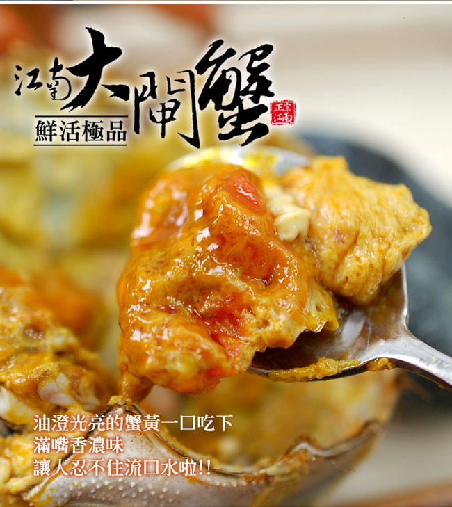 ●商品名稱:滿滿蟹黃鮮活江南(母)大閘蟹6隻(4兩/隻 贈工具組)免運-★無法超取★