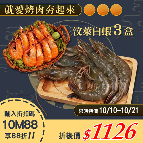 .商品名稱:嚴選海水養殖汶萊白蝦3盒(600g/盒15±3尾)