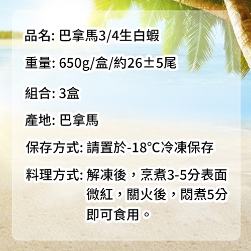 ●商品名稱:特大|巴拿馬活凍白蝦650g|3盒(約26±5尾/盒)