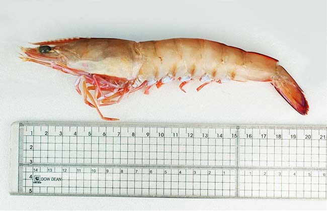 外觀:蝦殼粉紅帶橙,尾部顏色鮮明是台灣俗稱紅刺蝦