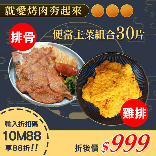 ★會員限定88折★便當主菜30片組(鐵路排骨15片+卡拉雞腿15片)