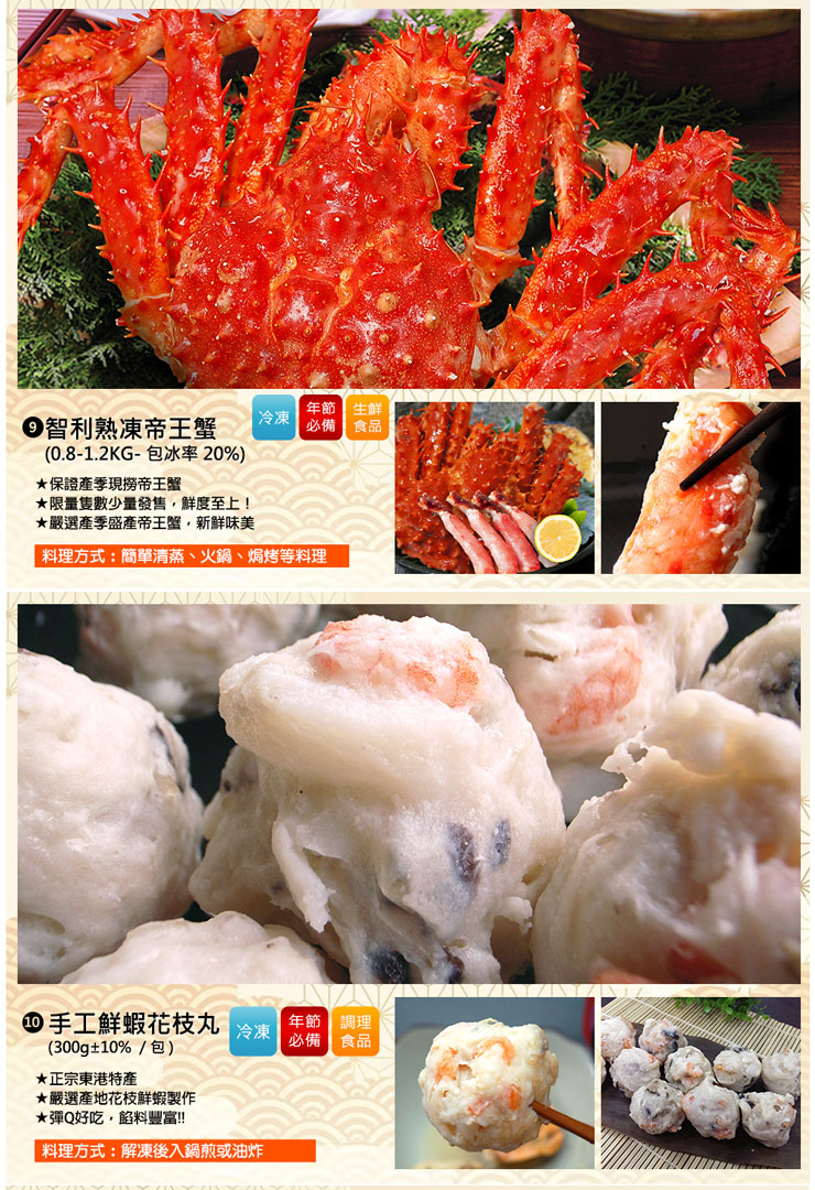 9. 智利熟凍帝王蟹:如圖所示(依商品包裝標示為準)