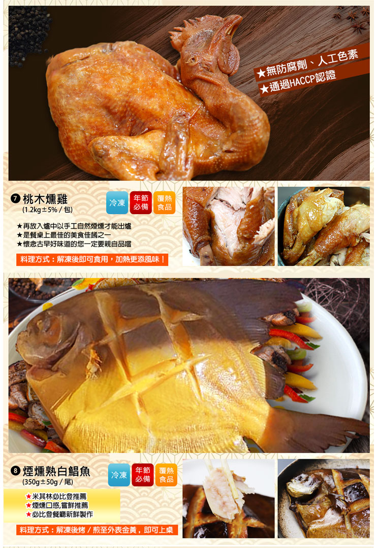 7. 桃木燻雞:如圖所示(依商品包裝標示為準)