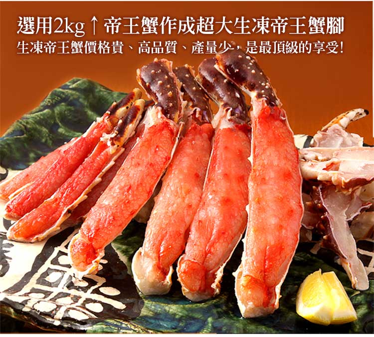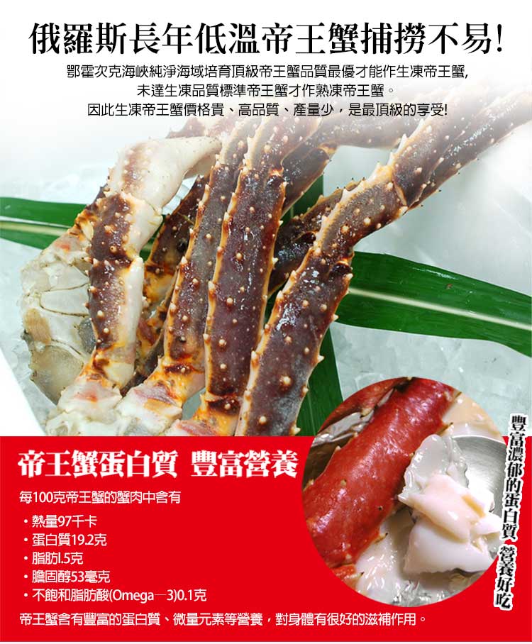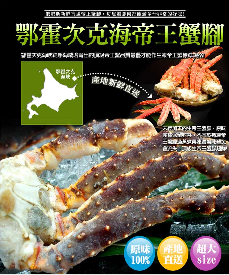 .商品名稱:巨無霸|鄂霍次克海|生凍鱈場蟹腳1200-1400g|半對