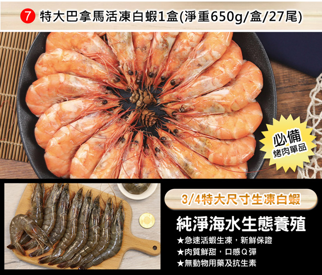 (7) 特大巴拿馬活凍白蝦(淨重650g/盒/27±5尾)