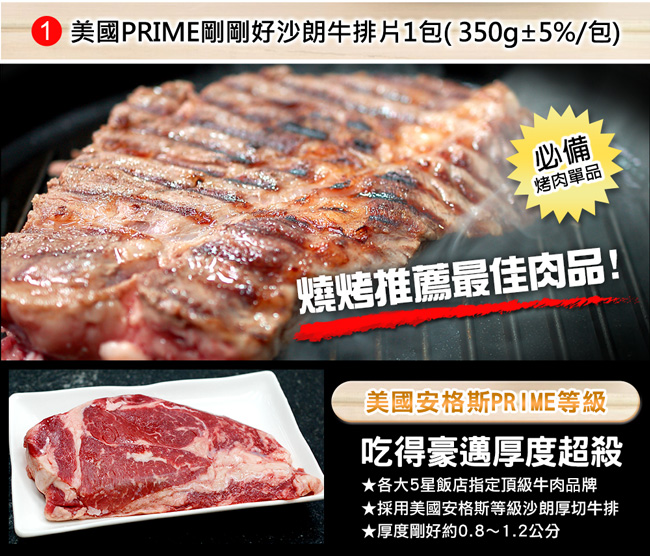 (1) 美國安格斯PRIME沙朗牛排片1包(350g±5%/包)
