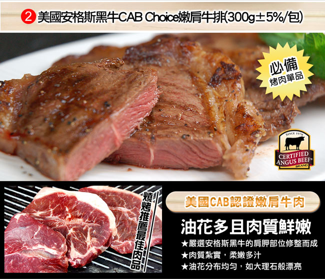 (2) 美國安格斯黑牛CAB Choice嫩肩牛排(300g±5%/包)