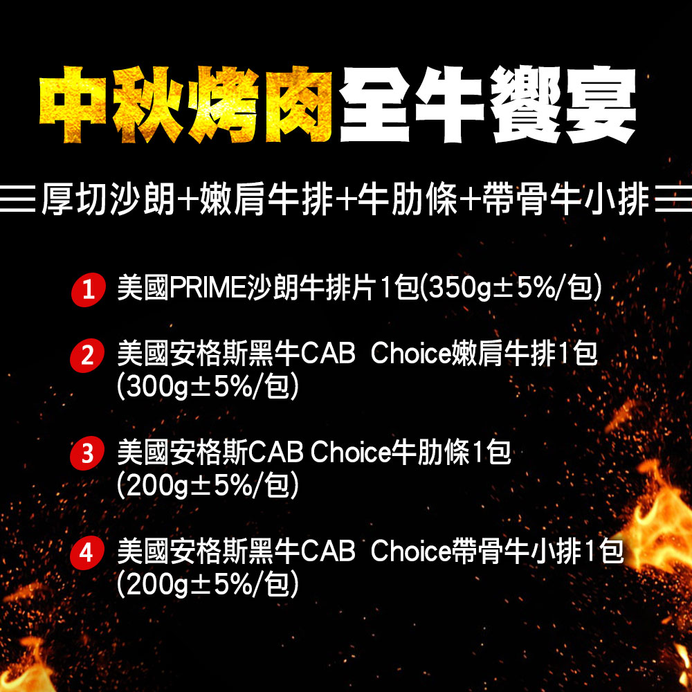 中秋烤肉全牛饗宴(厚切沙朗+嫩肩牛排+牛肋條+帶骨牛小排)
