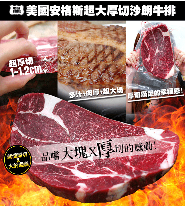 .商品名稱:比臉大 PRIME 美國安格斯沙朗牛排500g×3片
