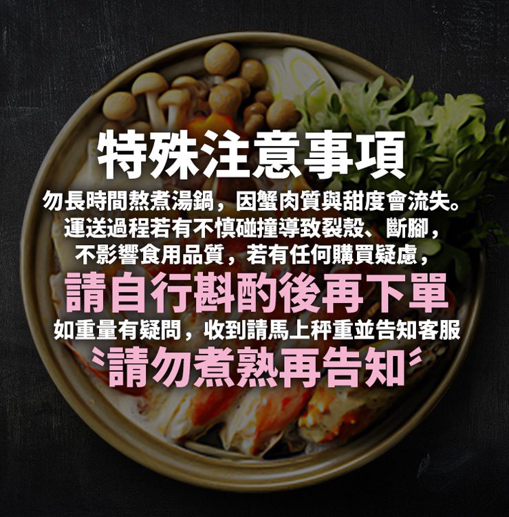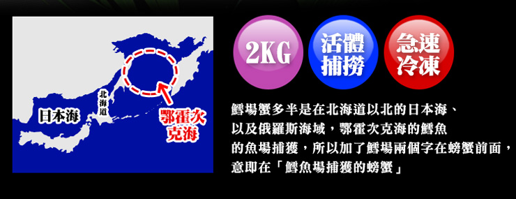 •商品名稱:熟凍整隻鱈場蟹(2.2-2.4kg/隻)