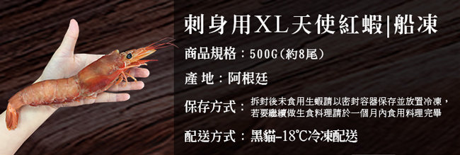 .商品名稱:XL|刺身用|天使紅蝦500g |3盒|約8±3尾|免運