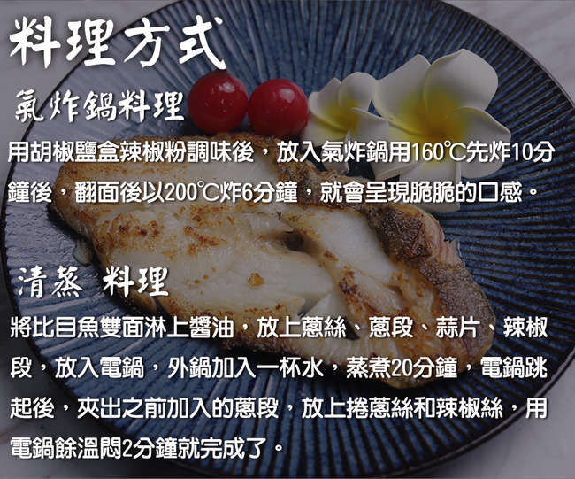 .料理方式 : 簡單煎烤加熱即可食用,亦可加入各種食材製成精緻的大比目魚料理!